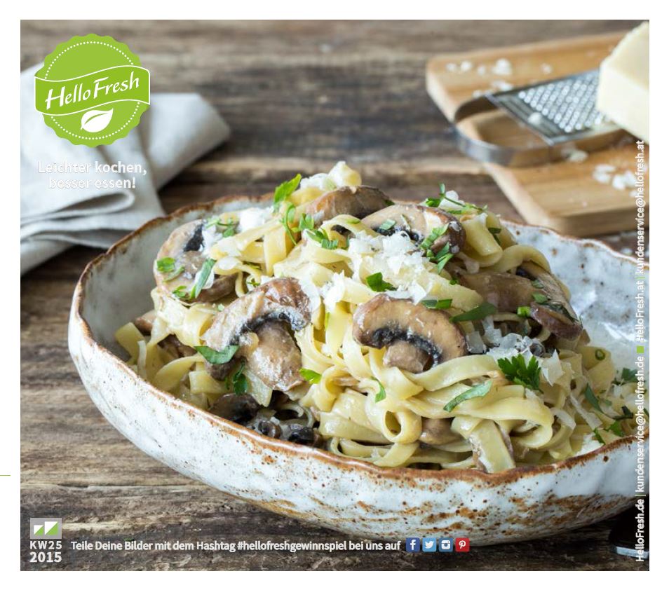 Leider habe ich das bei der ersten Aktion ver­bum­melt. Schade, denn die Kochbox kommt in diesem Fall ein­malig frei Haus. Per­fekt zum Testen. Ich benö­tige dazu nur Euren Namen und eine E‑Mail Adresse. Ihr werdet dann direkt von Hello Fresh benach­rich­tigt und könnt ent­scheiden ob Ihr die „Classic“- oder „Veggie“-Box haben möchtet. Die Lie­fer­an­schrift wird von Euch angegeben.
